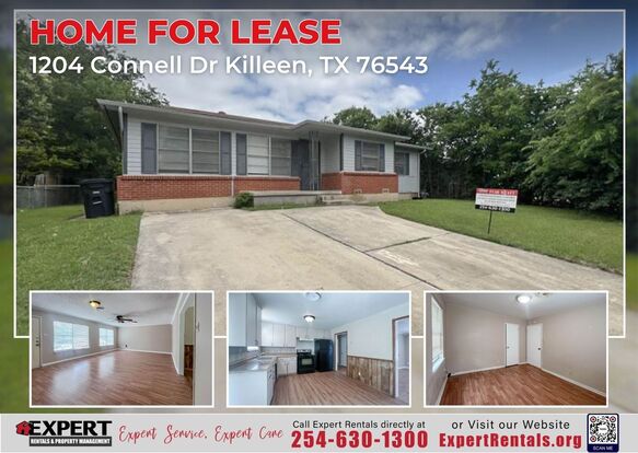 Discover your new home at 1204 Connell Dr, Killeen, TX 76543! This delightful 3-bedroom, 1-bathroom single-family residence offers 1,411 sq. ft. of living space, perfect for everyone seeking comfort and convenience. Built in 1964, it combines classic charm with amazing features, including HVAC and air conditioning for year-round comfort. The spacious kitchen, equipped with a refrigerator and a stove, makes meal prep a breeze. The large 8,063 sq. ft. lot provides ample outdoor space for relaxation and entertainment. Located near Peebles Elementary, Rancier Middle, and Killeen High School, this home offers easy access to local amenities and major transportation routes. Pets are welcome, making this the perfect place for you and your furry friends.
