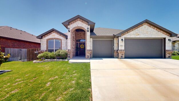 The living room is anchored by a striking stone fireplace, state of the art ceilings with wood beams. The bedrooms are spacious and well-lit, with the primary bedroom featuring natural light from large windows. Front bedroom is currently used as an office/home theater, but can be used as a bedroom. The bathrooms are equipped with modern fixtures and finishes, including a glass-enclosed shower in the primary bath. Spacious laundry room with space for folding. Short drive from Fort Cavazos, great schools, Maude Moure Elementary School, excellent location.