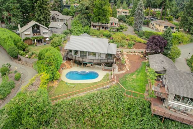 Available Now. One of kind rental opportunity, contemporary style home in the Houghton neighborhood of Kirkland. Beautifully remodeled and a home like no other with vibrant colors, brilliant functionality and top of the line finishes. Located on a lot surrounded by nature yet minutes away from Downtown Kirkland. The main floor has an open floor plan with the living, dining and kitchen in the heart of the home. Beautiful floor to ceiling concrete gas fireplace, ample windows to bring in natural light and vaulted ceilings are just some of the great features on the main floor. The kitchen has custom cabinets, Thermador appliances, huge kitchen island with casual seating, plus a butler’s pantry with a wine fridge. Easy access to expansive deck from kitchen. Guest suite just off the entry with its very own bathroom and large walk-in closet. Tranquil primary suite with accent wood wall, dual closets and access to deck. Spa like bathroom with marble countertops, heated towel holder and a huge shower with contemporary claw foot tub, a smart design. The main floor also includes a powder bathroom and office with industrial barn door that is a white board, a great writing space for to-do lists and meal planning. Downstairs includes two bedrooms, bathroom and a spacious bonus room with endless options for multipurpose use. Enjoy the warm summer days cooling off in the pool. Fully fenced backyard. This home has A/C and 3 zoned heating. Some other notable features, LED lighting on stairway and in downstairs bathroom. Prime location makes for a quick commute to Bellevue or Seattle. Enjoy all the shops, parks and restaurants Kirkland has to offer.