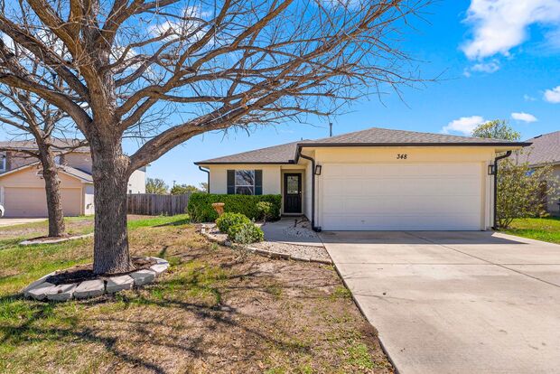 Welcome to 348 Atlantis in Kyle, TX 78640, a well-designed 3-bedroom, 2-bath home offering comfort and modern style throughout. Inside, you’ll find ceiling fans for added comfort and a bright kitchen featuring quartz countertops and a convenient breakfast bar that’s perfect for casual dining or entertaining. The primary bedroom includes a spacious walk-in closet. Bathrooms featuring a walk-in shower and a relaxing soaking tub. Step outside to enjoy the covered porch overlooking a fenced backyard, providing a great space for outdoor relaxation, gatherings, or pets while offering privacy and functionality in a welcoming home.