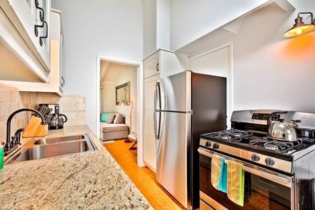 Spacious 1B Unit Offers High-vaulted Wood Ceilings