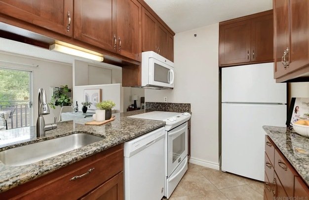 Beautifully updated 1-bedroom condo in the desirable Parkway Pointe community in La Mesa. This move-in ready home features a remodeled kitchen with custom cabinetry, granite countertops, and matching appliances, plus tile flooring throughout for a clean, modern feel. The upgraded bathroom includes a fully tiled shower with glass doors, stainless fixtures, and a granite vanity.