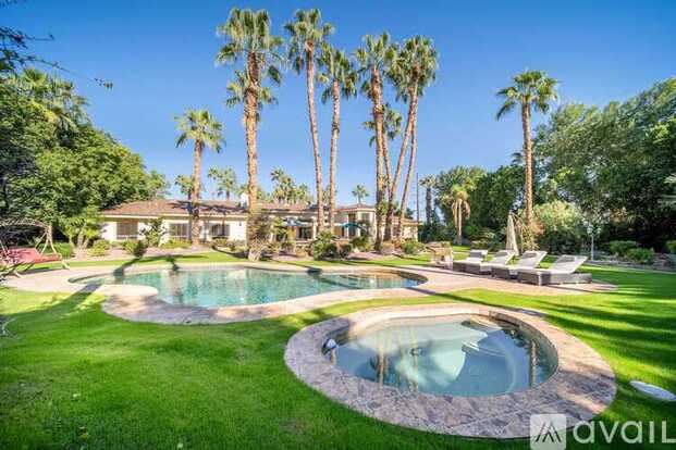 Casa Monte Grande is a private luxury estate inside the gated Estates at La Quinta, set on an expansive, beautifully landscaped property that feels more like a boutique resort than a single home. Inside, the spaces are generous and thoughtfully designed: a grand foyer with iron double doors and a chandelier, a designer blue-and-gold chef’s kitchen, a comfortable great room that opens to the pool, a dedicated indoor bar, and a cozy theater lounge with reclining leather seats. The primary suite feels like its own apartment, with a king bed, a fireplace, and a full sitting area with sofas, plus direct access to the patio. Every bedroom has its own ensuite bathroom and walk-in closet, and one wing of the home functions as a flexible family suite with multiple beds. Outside, Casa Monte Grande unfolds into a true oasis with a freeform pool and spa, large lawns, mature palms, a circular fire pit with built-in seating, a BBQ grill and shaded patio lounge for outdoor meals, and a unique wooden deck perched above a tranquil pond and waterfall. It’s a place designed for groups who want space to spread out, gather, relax, and genuinely enjoy being at home in the desert.