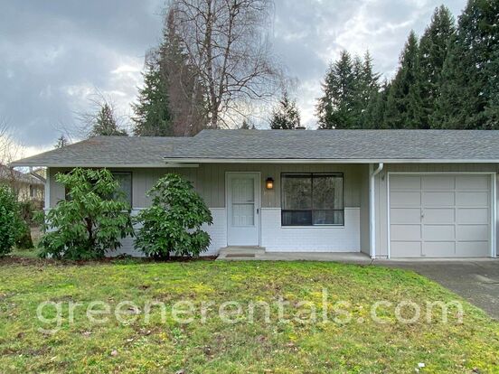 Move-in ready 2 bedroom, 1.5 bathroom, 990 sf duplex in Lacey. Freshly painted interior and new blinds. Large primary suite with extra closet space. Wood-look laminate throughout home for easy upkeep. Back slider leads to patio and small back yard. Washer and dryer included. 1-car garage. Located near College Street across from Mountain View Elementary.