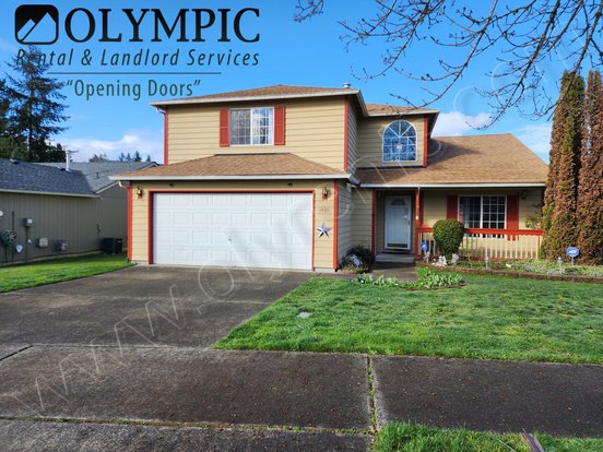 Welcome to this large 4 bedroom, 2.5 bath home built in 1998 with 2189 sq. ft. in the Madrona Park Community! Hard floors throughout. Main level Primary suite with dual vanity and walk in closet. Kitchen includes stainless steel refrigerator, gas range, mounted microwave, dishwasher and disposal. Formal dining room and eat-in dining off kitchen. Covered back patio with large fenced back yard and garden shed. Gas forced air heat with air conditioning heat pump. Washer and Dryer hook ups. Pets negotiable with additional rental & deposit. City of Lacey UGA.