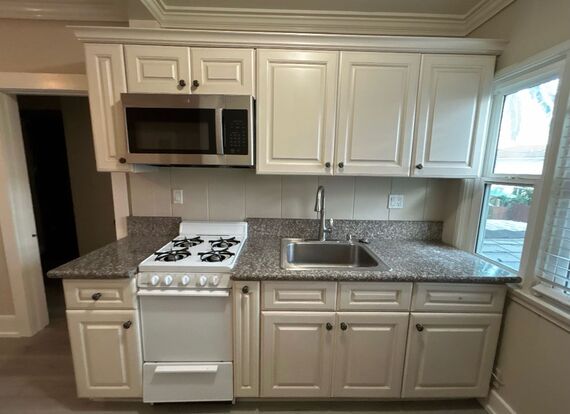 Private studio with updated bathroom, full professional kitchen, and efficient layout.