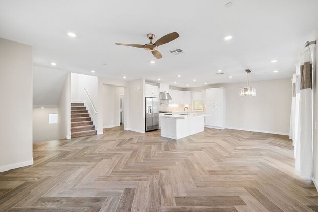 Unfurnished corner-unit home offering exceptional space, versatility, and modern living PLUS paid-off solar for little to no electric bill! This beautifully designed multi-level residence features an attached 2-car garage with overhead storage and inviting tranquil water features at the entrance, setting the tone for a serene living experience. Located within walking distance to the resort-style community clubhouse, enjoy 5-star amenities including a sparkling pool, relaxing firepit, and elegant gathering areas. The first floor includes a private guest bedroom and bath, perfect as an in-law suite, office, or multi-gen living space. This suite also enjoys direct access to a private lanai enhanced by its own soothing water feature, creating a peaceful indoor-outdoor retreat. On the second floor, an open-concept living room, dining area, and generous secondary bedroom provide a bright and functional main living level. The third floor offers ultimate convenience with a laundry room, hallway cabinets for abundant storage, and the inviting primary bedroom suite complete with a spacious bathroom and walk-in closet. A secondary bedroom on this level adds even more flexibility for family, guests, or workspace. A rare combination of space, serenity, walkable luxury amenities, and energy savings this home delivers the full Serrano Summit lifestyle experience.