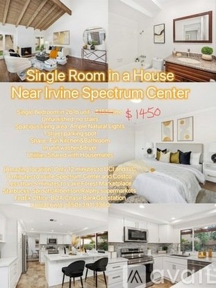$1,650 - 1 Bedroom Shared Bathroom Near Irvine Spectrum Center