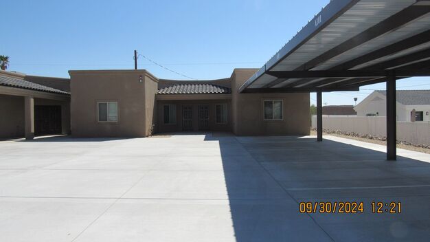 Introducing our newly constructed 1 bedroom, 1 bathroom duplex located in the vibrant city of Lake Havasu City, AZ. This modern living space features a sleek finished concrete floor and luxurious granite countertops in the kitchen. The open floor plan allows for seamless flow between the living room and kitchen, perfect for entertaining guests or simply relaxing at home. Large windows provide ample natural light, while window coverings offer privacy when needed. With covered parking included, convenience is at your fingertips. Don't miss out on the opportunity to make this stylish and contemporary duplex your new home.