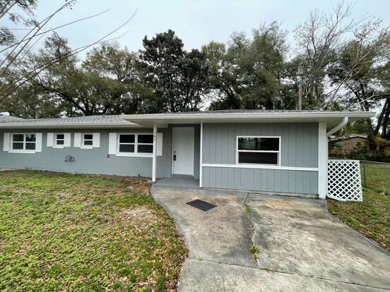 Welcome to this newly renovated 2/1 Duplex in Lake Helen, FL! This charming home boasts two oversized bedrooms and a full bathroom, complete with a shower/tub combo. The kitchen is fully equipped, featuring stainless steel appliances and stunning granite countertops. The open floor plan allows for ample natural light to illuminate the laminate wood floors. The home also includes ceiling fans for those warmer Florida days, and washer/dryer hook-ups conveniently located in the inside laundry room. The large backyard is perfect for outdoor activities or simply enjoying the Florida sunshine. Plus, the property is pet-friendly, so your furry friends are welcome! The home also features stylish barn doors for a touch of rustic charm. To top it all off, lawncare is included, so you can enjoy the beauty of your surroundings without the hassle of maintenance!