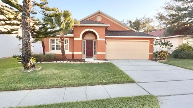 3 Bedroom & 2 Bathrooms, 2 Car Garage, Single Family Home, Living/Dining Room Combo & Family Room, Kitchen with Island & Eat-In Kitchen, Appliances Included: Stove, Refrigerator, Microwave, Dishwasher and Disposal, Inside Utility Room w/ Washer & Dryer, Split Plan, Master Bathroom has Dual Sinks with Separate Tub and Shower, Open Patio, Flooring is tile and carpet, Community Pool, Basketball and Playground, Tenant Responsible for Lawn Fertilization NO PETS, NO SMOKING, Year Built: 1999/ 2042 Sqft.