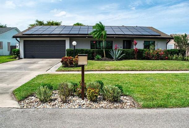 Step into a meticulously maintained and inviting open-concept home featuring a flexible split floor plan with three to four bedrooms and two beautifully updated bathrooms. The newer kitchen is a chef's delight, boasting clever storage solutions like lazy-susan corner cabinets, a pull-out spice rack, and a convenient garbage can holder, alongside sleek stainless steel appliances including a double oven and warming drawer, all complemented by elegant granite countertops. Enjoy the luxury of completely renovated bathrooms and gorgeous, easy-to-care-for 24x24 porcelain tile flowing seamlessly throughout the entire residence. Enhancing the home's sophisticated appeal are crown moldings in the main living areas and the master bedroom. Step outside and discover your own private paradise with a stunning backyard pool, perfect for relaxation and entertaining under the Florida sunshine.