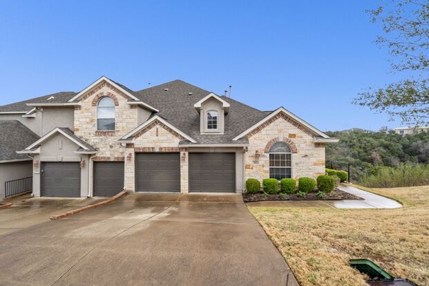 SECOND FULL MONTH FREE WHEN YOU SIGN A 12-MONTH LEASE! 202 Sunrise Ridge Cove in Austin, TX 78738 offers a luxurious 3-bedroom, 3-bathroom condo in the gated Enclave at Alta Vista community. This end-unit home boasts panoramic hill country views and an open floor plan with high ceilings and abundant natural light. The gourmet kitchen is equipped with granite countertops, a tile backsplash, a breakfast bar, and stainless steel appliances, including a built-in oven, gas cooktop, microwave, refrigerator, dishwasher, disposal, gas range, and ice maker. The spacious primary suite is located on the main level and features a walk-in closet and a luxurious bathroom with a soaking tub, separate shower, and double vanity. A private guest suite is situated on the lower level, offering additional privacy. Enjoy outdoor living on the large deck overlooking the Balcones Canyonland Preserve. Community amenities include a clubhouse, pool, fitness center, tennis courts, playground, and walking trails. Located within the highly acclaimed Lake Travis ISD, this home is close to Lake Travis High School, the Hill Country Galleria, and various dining and shopping options. Pets are negotiable, making this an ideal home for families and professionals alike. Tenants will be required to sign up for the Resident Perks Program at $25/mo per household. HOA maintains landscaping and covers water, sewer, and trash.