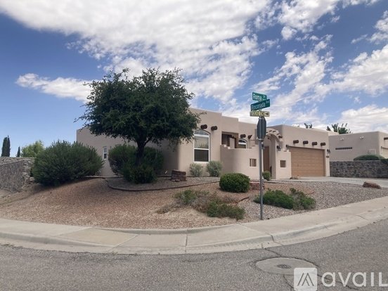 Beautiful Santa Fe Spanish style 4 bedroom 2 full baths with Kiva gas fireplace, open kitchen floor plan, new granite counter tops, all ceramic tile floors throughout, Spanish Pine cabinets in kitchen, walk-in closet in master bedroom, spa tub, ceiling fans in every room, easy care Xeriscape landscape with automatic drip system. Surround sound in front room with speakers in master bedroom and patio with smart tech panel. Entry courtyard with a separate door to garage that can be used as either a two car garage or livable game room that is insulated with textured and painted walls and two windows. RV camper parking on side of home, 220 electrical hookup for EV or camper. This home was a model home. One small dog can be negotiated. Centrally located one block to Hwy 70, access to Wal-Mart, White Sands, Mountain View Hospital and NMSU.
