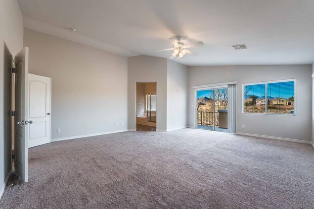 Beautiful 4 bedroom, 2 bath, 2 story home located in Mountains Edge. Open floor plan featuring laminate plank flooring. Separate formal and casual dining areas. Granite counter tops in kitchen and upgraded stainless-steel appliances. Upstairs Loft. Carpet in bedrooms. Covered patio with balcony. Gated Community.