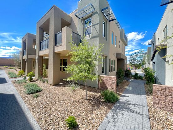 This spectacular 3-bed condo located in Affinity community is ready for immediate move-in! This open-concept home boasts amazing upgrades throughout, quartz countertop, ss appliances, island breakfast bar kitchen with a large walk-in pantry. Primary bed and bath with walk-in closet and double sink. 2 car garage attached. Community pools, spa, and fitness center. This amazing community is in the heart of Summerlin.Water paid by HOA.