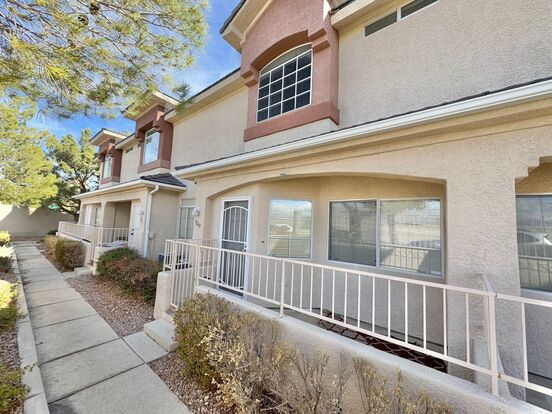 Beautiful townhome located in the desirable Northwest Las Vegas area near Summerlin. This well-maintained 2 bedroom, 2.5 bathroom home is situated in a gated community and features a bright, functional open floor plan with a spacious living area that flows into the dining space. The living room includes wood flooring, a ceiling fan light combo, and window blinds, while the tiled entry and charming front porch add to its appeal. The kitchen offers ample cabinetry, generous counter space, all appliances included, and a breakfast bar for additional seating. A separate laundry area with washer and dryer provides convenience. The primary bedroom serves as a comfortable retreat with a walk-in closet, wood flooring, and ceiling fan, while the primary bathroom includes tile flooring and a shower/tub combo. Enjoy low-maintenance living with community amenities such as a pool and spa, all conveniently located near shopping, dining, parks, golf courses, schools, and with easy access to major roadways and nearby Summerlin amenities.