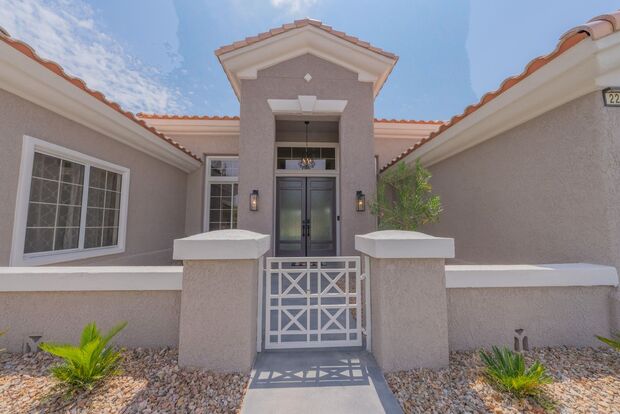 Beautiful one-story, 3 bedrooms, reimagined Aristocrat model in Sun City - property sits a top the hills of Lauren Drive on the golf course, complete with strip and street views and private cul de sac. Everything is brand new inside the property. 3-garage. New appliances and a Sub Zero refrigerator, including a separate gorgeous built-in wine refrigerator. Please note this is a 55+ community. Don't miss out on this breathtaking home! No Pets Allowed.