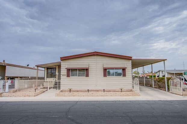 Welcome to the vibrant 55+ community where we present a stunning 2-bedroom, 2-bathroom home that perfectly blends comfort and convenience. This home boasts a spacious living room and dining room, perfect for entertaining or simply relaxing. The kitchen is a chef's delight with ample storage space. The home also features a built-in desk in the laundry room, providing a dedicated space for your tasks. The Arizona room with AC is a bonus, offering an additional space for relaxation. The home has been recently updated with new flooring throughout and refreshed bathrooms, enhancing its appeal. The exterior is equally impressive with freshened landscaping and a workshop for your hobbies. The home comes with a washer and dryer, and 2-car covered parking, adding to your convenience. As a resident, you'll have access to the community pool and clubhouse, fostering a sense of community and active lifestyle. Experience the best of 55+ living in this beautiful home.