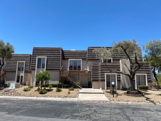 Located in center of town and near UNLV, this second story townhome in a gated community has new carpet. The large livingroom has a gas fireplace, and there is a separate dining area. Bedrooms are large.