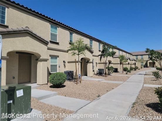 PRIME LOCATION MINUTES AWAY FROM NELLIS AFB IN A GUARD GATED COMMUNITY!! Discover the perfect unit situated just moments from the north gate of Nellis AFB. The primary bedroom, conveniently located on the first floor, offers a tranquil retreat. Ascend to the second floor to find an open and inviting great room, providing ample space for relaxation and entertainment. The kitchen seamlessly connects to the great room and boasts an island, elegant granite countertops, and sleek black appliances. Additional well-appointed bedrooms can also be found on the second floor. Benefit from the convenience of an attached two-car garage. Indulge in the desirable community amenities, including a refreshing pool, invigorating spa, inviting BBQ area, and a delightful park. This exceptional property provides a harmonious blend of convenience and comfort, making it an ideal place to call home.