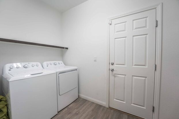 Step into this stunning 4-bedroom home featuring a spacious living area with durable waterproof vinyl flooring throughout. The open-concept kitchen boasts a generously sized island, granite countertops, pantry, and stainless steel appliances—perfect for everyday living. Each bedroom offers plenty of space, including a large primary suite with a massive walk-in closet and a private bathroom with dual sinks and a walk-in shower. Enjoy the convenience of an included washer and dryer. The backyard offers a low-maintenance setup with pavers and rock—ready for relaxing or entertaining!