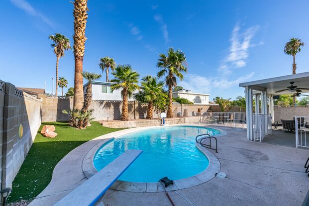 Welcome to this stunning 4 bedroom, 3 bathroom fully furnished home in Las Vegas, NV. This home boasts tons of cabinet and counter space in the large open kitchen with stainless steel appliances. The spacious living room is perfect for entertaining, with French doors that lead to the sparkling pool and covered patio. The bedrooms are generously sized and feature wood shutters for added privacy. The security fence around the pool helps ensure safety while enjoying the outdoor space. This home is an entertainment paradise, perfect for hosting gatherings and creating lasting memories. Don't miss out on this amazing opportunity to make this house your home!