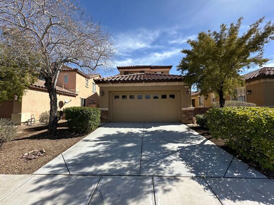 Lovely 2-story home in desirable Summerlin West! Features 3 primary bedrooms, each with a private bath and walk-in closet, including a full bedroom and bath on the first floor. Granite countertops, tile and carpet flooring, ceiling fans, and all appliances included. Low-maintenance backyard with pebble rock and a concrete patio pad. The price includes $50 a month for Trash & Sewer.