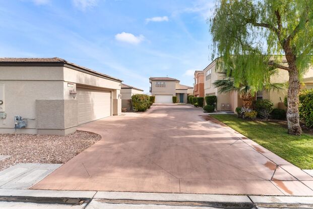 Charming three-bedroom, two-bath home located in a gated community in Summerlin! This home features an attached garage for convenient parking and extra storage, along with a private backyard, perfect for entertaining. Residents enjoy fantastic community amenities, including a sparkling pool and relaxing spa. Enjoy a private balcony with beautiful mountain views, a spacious kitchen with a large island and upgraded backsplash, and a cozy fireplace in the living room. Ceiling fans throughout provide added comfort year-round. Close to shopping, dining, and major roads for easy access.