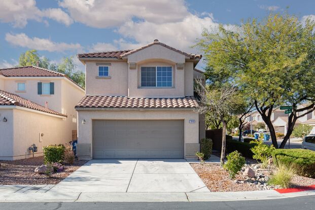 Welcome to this stunning 3-bedroom, 2.5-bathroom home located in Northwest Las Vegas. This property is nestled within a secure gated community, offering an extra layer of peace and security. The home boasts an island kitchen, complete with sleek granite counters, perfect for those who love to cook. The all-tile and wood flooring throughout the home is not only stylish but also easy to maintain. The home has been freshly painted, giving it a clean and modern feel. Each room is equipped with ceiling fans and shutters, ensuring comfort all year round. The master bedroom is a true retreat, featuring a separate tub and shower for ultimate relaxation. Step outside to the covered rear patio, an ideal spot for outdoor dining or simply enjoying the Nevada sunshine. The community also offers a lush greenbelt, providing a beautiful space for leisurely strolls. This home truly has it all, offering a blend of comfort, style, and convenience.