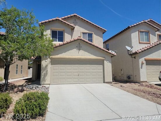 MINUTES FROM “M” CASINO & THE LAS VEGAS STRIP! This gorgeous home offers formal living and dining areas, plus a spacious kitchen with island and granite counters that opens to a large family room. Upstairs features a huge loft—perfect for an office, game room, or additional living space. The primary suite includes a walk-in closet, dual sinks, and a separate tub and shower. Enjoy a low-maintenance backyard with covered patio and synthetic grass, ideal for relaxing or entertaining. Pet considered.