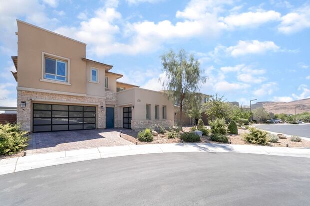 Step into modern elegance with this recently built South Summerlin home, perfectly situated just minutes from Downtown Summerlin. A welcoming courtyard sets the tone for stylish living, while the open floor plan features a gourmet kitchen with a large quartz island, top-of-the-line stainless steel appliances, ample cabinetry, and a home water softening and alkaline water system. Expansive sliding glass doors in the dining and living areas bring in natural light and open to a stunning backyard retreat with a modern pool, desert landscaping, a firepit lounge, and a built-in gazebo complete with an outdoor kitchen and grill area. Inside, a downstairs bedroom with full bath offers flexibility, while upstairs boasts a spacious loft with built-in cabinetry and floating shelves, along with a luxurious primary suite showcasing a private balcony, custom walk-in closet with center island, and spa-like bath with a stand-alone tub, walk-in shower, and dual sinks. Additional bedrooms are generously sized with thoughtful design, completing this entertainer’s dream in one of Summerlin’s most prime locations.