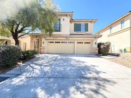 Wonderful two-story single-family house. One of the bedrooms is a mini-suite with a full bath and walking closet,4 Full bathrooms, tile first floor, and laminate wood floors throughout the house, a patio with balcony two-way fireplace, and 3 Car garage. CONTACT A REALTOR TO SEE THE PROPERTY IN PERSON. Office contact number:702-462-5882