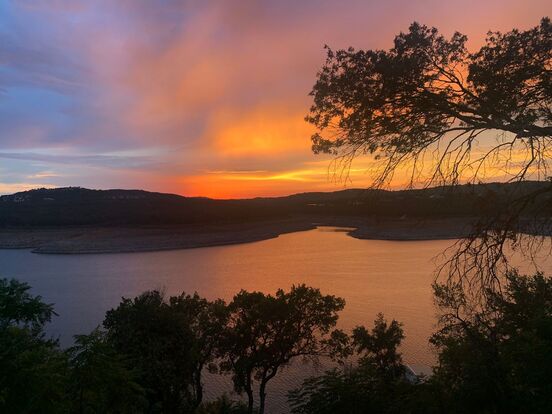 Welcome to 8124 Joy Rd! This stunning Volente Lakefront 3 bedroom 2 1/2 bath home is a true gem, offering unparalleled views and an array of features that elevate it above the ordinary. Nestled within the renowned Grandview, Four Points, and Vandergrift school districts, this home offers access to top-tier education and amenities. With downtown just 30 minutes away and excellent shopping options at 4 Points, you'll enjoy the perfect balance of serenity and accessibility. As you step inside, you'll be captivated by the panoramic vistas of the lake from every angle, and breathtaking sunsets. Recently upgraded and move-in ready! Entertain in style on the expansive decks spanning both the first and second floors, where you can soak in the sunshine and savor the gentle breeze off the water-front. The first floor beckons with an open layout encompassing a chef's kitchen, dining area, two seating areas, a dry bar, and a powder room / ½ bathroom - perfect for hosting gatherings both large and small. The primary bedroom is on the first floor as well, with a full private bathroom with jacuzzi, and private door to the outside. Upstairs, a secondary bedroom awaits with awe-inspiring views and access to the upper deck, along with a private bath and study. An additional bedroom provides comfort and convenience for family or guests. Additional highlights include a storage shed, W/D closet with connections, and a refrigerator included for your convenience. With local favorites like Beachside Billy's, Volente Beach water-park, and Shack 512 nearby, you'll never run out of things to explore. Plus, pet-friendly policies ensure that your furry friends can join in on the lakeside fun. Some patio furniture is included! Tenants will be required to sign up for the new Resident Perks Program at $25/mo per household. Move in ready June 17th. Tenants will need to pay a $50 mo septic charge.