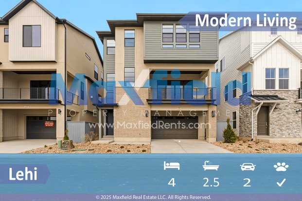 Welcome to this Brand New Modern 4BD 2BTH Home in Lehi, UT! This stunning house features a spacious layout with 4 bedrooms and 2 bathrooms, perfect for comfortable living. The kitchen is equipped with stainless steel appliances, a gas stove, and a dishwasher, making meal prep a breeze. Enjoy the convenience of central air and air conditioning, as well as the cozy fireplace in the living room. The master bedroom boasts a private bathroom and a closet organizer for added storage. With a 2 car garage, fenced patio, balcony, and hardwood floors throughout, this home has everything you need for modern living. Also includes washer and dryer, don't miss out on the opportunity to make this beautiful house your new home!