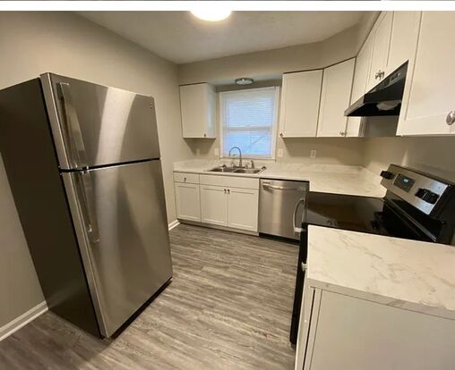 Get your application in before it's gone. This 2 bedroom, 1 bath duplex features ground floor living with all hard surface flooring, kitchen with stainless appliances and dishwasher, lots of cabinet space and yard space for water weather entertaining!