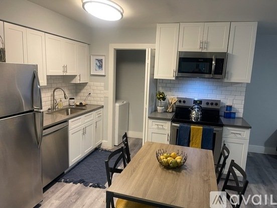 • Modern kitchen with microwave, dishwasher & stainless steel appliances