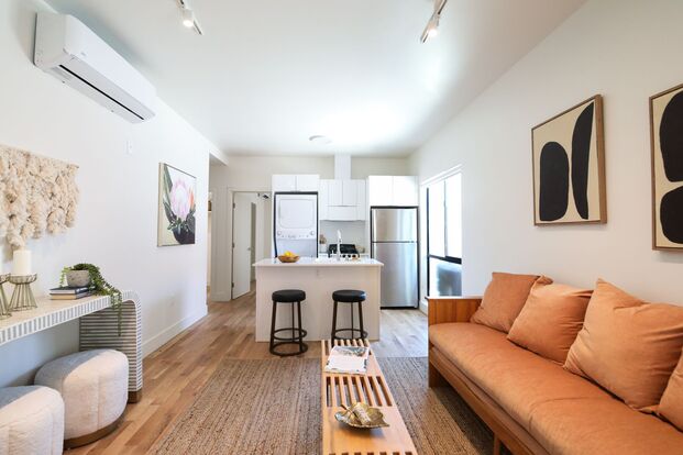 One block from Sunset, this beautiful NEWLY Renovated 2BR with 2 Full Ensuite Baths comes with a HUGE attached gated private front yard! This ground level unit gets beautiful light and has been throughly updated with a Mini Split AC unit is every room! Fully loaded with new appliances, it's just waiting for you to live your best life in Silver Lake! AND this unit comes with 1 compact off street parking space!