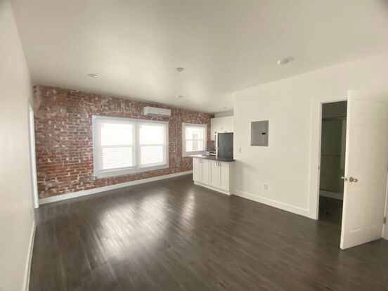 Exposed brick walls,new floors,blinds,kitchen and bath