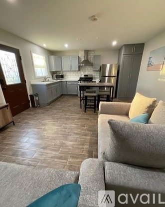 600 square foot house with large bedroom with walk in closet. Tile throughout the floor and open concept kitchen and living room. Very spacious bathroom with shower. Furnished with stove, refrigerator, microwave, a pair of sofas, and dinning table. Bed is not included. Separate entrance to dwelling which is located in the rear of property.