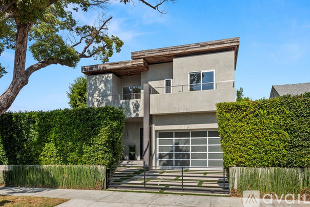 Fully furnished & gated modern home near Beverly Center, 3rd Street & Beverly Blvd shops. This lovely & hip modern home boasts 5 bedrooms all with their own en-suite baths plus a powder room (5.5 baths). High ceilings, hardwood floors, floating staircase & sliding pocket glass doors makes this an incredible home ideal for tenants looking to impress. The open floor plan includes a fully equipped kitchen with a built-in coffeemaker. A tranquil backyard awaits with an impressive pool, spa & fireplace. One bedroom downstairs with four bedrooms upstairs, each with their own balcony, along with a laundry room. Large & spacious master bedroom with a great walk-in closet & a master bath made for a king. 2 car garage + 2 car gated driveway.