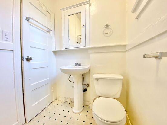 The full bath still retains much of the original tilework as does the kitchen.