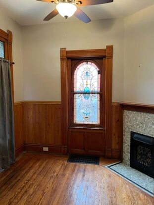 Natural woodwork and hardwood floors throughout. Exposed brick, stained-glass window and fireplace Kitchen includes stainless steel appliances, granite countertops and new cabinetry. Harwood floors throughout. Beautiful glass shower with professional tile work.