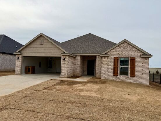 Modern design meets everyday comfort in this beautifully crafted one-story ranch nestled in a vibrant new community. Thoughtfully designed with 3 bedrooms, 2 bathrooms, and 1,669 square feet of well-planned living space, this home offers the perfect balance of style and functionality. The open-concept layout effortlessly connects the kitchen, dining, and living areas—creating an inviting space ideal for gathering with family or entertaining guests. Natural flow and intentional design make every square foot feel purposeful from the moment you step inside. The spacious primary suite serves as a private retreat, complete with a large walk-in closet and a spa-inspired en-suite bath featuring a soaking tub and separate walk-in shower. Two additional bedrooms offer flexibility for guests, a home office, or hobbies. Step outside to the covered back porch—perfect for weekend barbecues, relaxing evenings, or enjoying time with pets and family. A finished two-car garage adds convenience and extra storage.