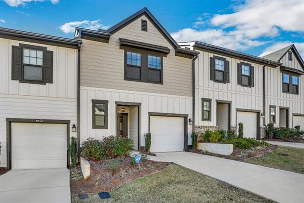 Contemporary design and finishes abound in this practically new townhouse in the Overlook at Queen Creek. Constructed in 2020, this townhome has it all, like an incredible location, fresh paint throughout, attached one car garage, and great community amenities. In this open concept floor plan, the eat-in kitchen overlooks the family room for ease of entertaining friends and gathering with family, and leads to the private patio outside. The recently finished kitchen boasts upgraded stainless steel appliances, espresso cabinetry, granite countertops, a center island with space for seating, plus big pantry closet. Upstairs hosts the owners ensuite with a large walk-in closet and granite countertops on the vanity. Two additional bedrooms and one full bathroom are also upstairs, along with the laundry closet. Tucked along a winding, tree-lined road, the community is close to downtown Atlanta, Bellwood Quarry Park, and Truist Park and offers residents a pool and low maintenance living.