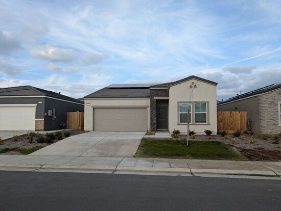 New construction home at Riverstone, modern amenities, modern living, solar, solar battery and an energy efficient home that includes Community pool and club house access. Welcome to this stunning 4 bedroom, 2 bathroom home in the desirable Riverstone Community of Madera, CA. This new construction house boasts modern amenities such as stainless appliances, energy efficient dual pane windows, solar + solar battery and a tankless water heater. The bright open floor plan is perfect for entertaining, and the fenced backyard provides a private outdoor space. Enjoy the convenience of a laundry room, central heating & air conditioning, and a 2 car garage with potential EV charger. Residents also have access to the community swimming pool and community amenities. Don't miss out on this energy efficient home with all the latest amenities.