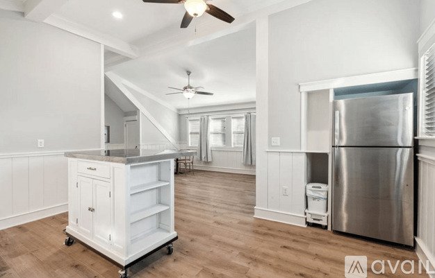 * Sleek Modern Kitchen: new cabinetry, countertops, stainless steel appliances, including a gas stove, and a sleek portable kitchen island.