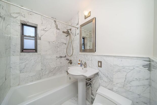 Located just a half-block from the 46th St-Bliss St #7 subway station, you are only 15 minutes from Midtown Manhattan. The building offers a grand marble lobby, a new elevator, and a 24-hour laundry facility. Nestled in the heart of historic Sunnyside, you are steps away from the neighborhood's best cafes, restaurants, and shopping. Rent includes heat and hot water.