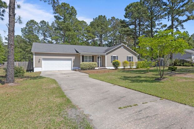 Welcome to this lovely ranch home nestled on almost an acre of land in a quiet neighborhood. You cannot beat the setting and space! Enjoy the huge fenced backyard with mature trees for shade, planting boxes for your own garden, and a back porch + stone patio for relaxing, grilling, and entertaining. Inside, you'll find a kitchen with stainless steel appliances as well as a kitchen island and a formal dining room. The Primary Suite has a walk-in closet and a dual-sink vanity in the en-suite bath. Two more bedrooms, another full bath, and an air-conditioned Flex space built into the garage to use as your workshop, craft room, office, etc! Don't miss this beautiful home tucked away enough for all the privacy and quiet you could want but still accessible to Topsail Island beaches, Wilmington, and Camp Lejeune.