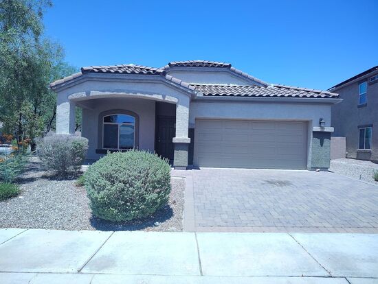 This is a beautiful 4 Bd, 2.5 Ba, 1850 sq. ft like-new home in desirable Saguaro Bloom HOA! This one has a family room plus living room, breakfast bar plus dining area, covered patio with additional pavers and huge private walled yard perfect for BBQs and entertaining! It comes with stainless-steel appliances to include the refrigerator, gas range, dishwasher, and built-in microwave and it has a reverse osmosis system. Large laundry room has W/D H/U and extra storage shelving. New carpet throughout, lots of cabinets, large pantry, recessed lighting, vaulted ceilings, white faux wood blinds. Master features a huge walk-in closet, dual sink vanity, shower plus garden tub. Saguaro Bloom is blooming with community parks, pool/spa, picnic areas, and walking paths. Great NW location is close to shopping and restaurants, only minutes to the Tucson Premium Outlets and Northwest Medical Center, and easy access to I-10. Utilities not included, but does have solar panels to help keep electric costs low! $2,100/mo, $2000 sec. dep. Pets negotiable with pre-approval and additional pet deposit. $40 Application fee per adult. Equal Housing Opportunity. I-10 West, exit Avra Valley Road, L-Portland Avenue, L-Lambert Lane, R-Saguaro Peaks Blvd., at the traffic circle take the 1st exit onto Hidden Saguaro Trail, L-Havenwood Way, R-Cloudwood Way.